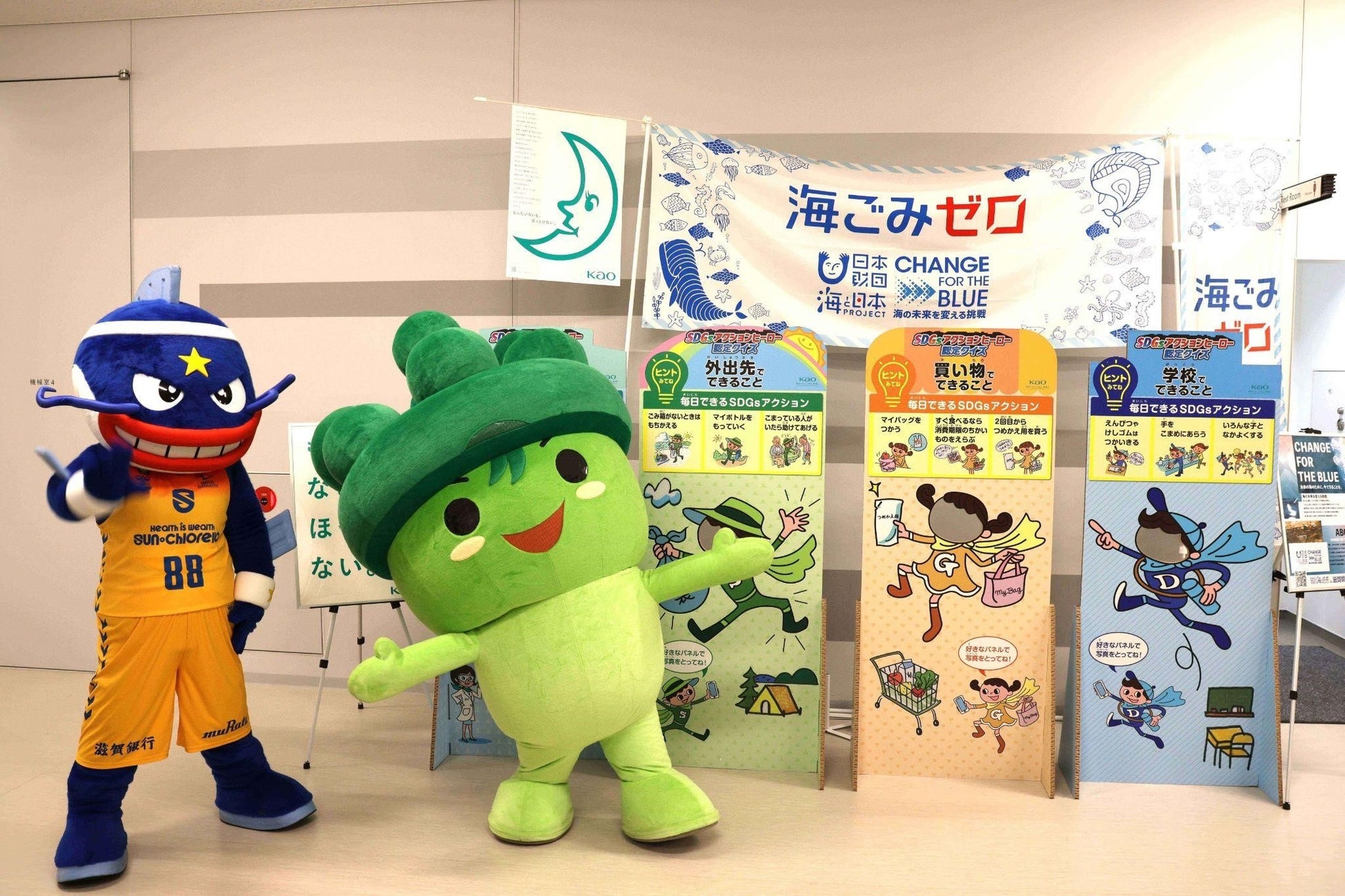 子どもたちが毎日できる「海洋ごみ削減・節水・節電」花王×滋賀レイクス×海と日本プロジェクト「SDGsアクションヒーロー認定クイズ」特設ブースを設置しました