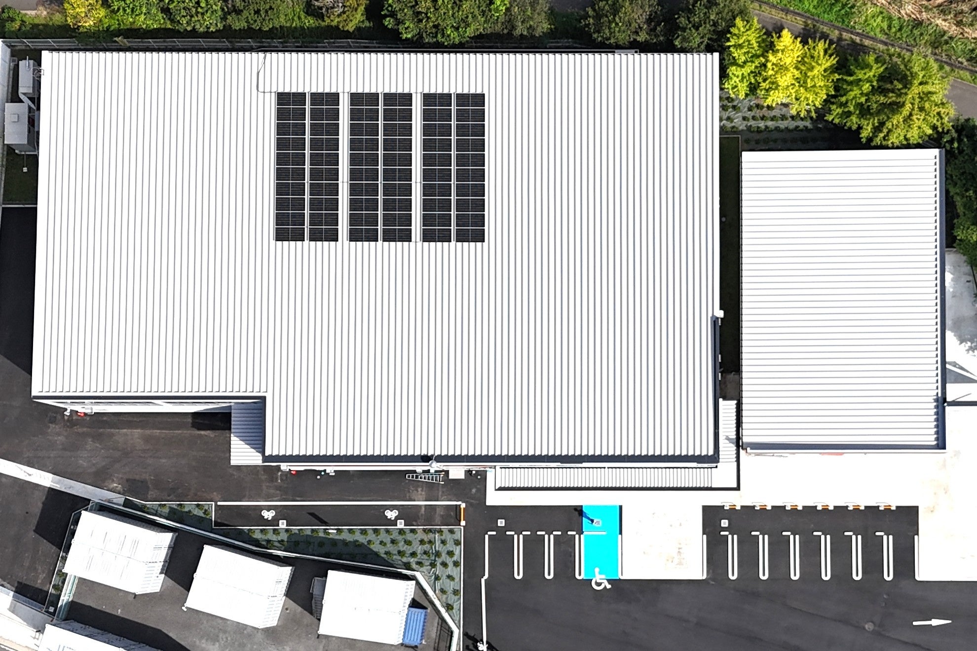 「人と地球にやさしい」共創共栄を目指した店舗づくりとして、屋根面に太陽光発電システム(発電容量25 kW、年間発電量44,969kWh)を導入。発電した電気を自家消費することで、年間約12.2tのCO2排出量削減を見込むなど、環境に配慮した設計としました。
