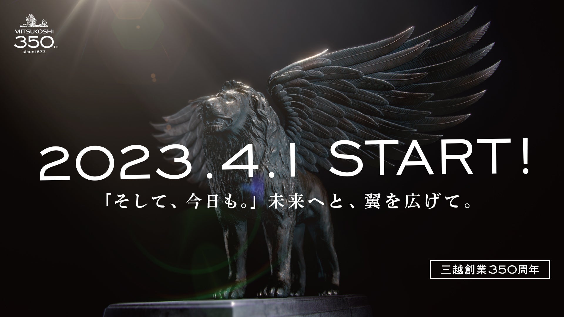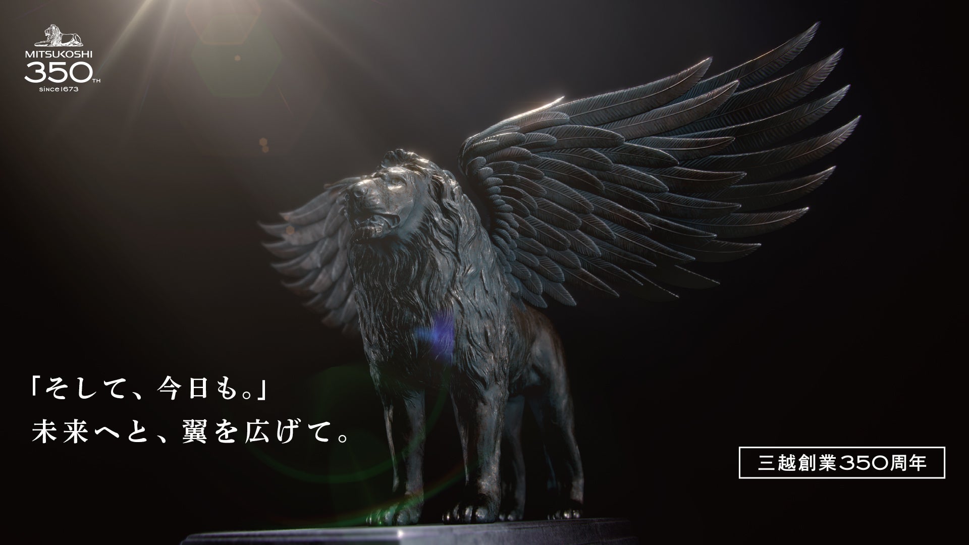 この度2023年4月に三越創業350周年を迎えることを記念し、空想の動物である「有翼のライオン」からインスピレーションを得て、誰も見たことのない「翼のライオン像」を3DCG動画で制作、お客さまに夢とファンタジーをお届けして、未来へと向かいます。