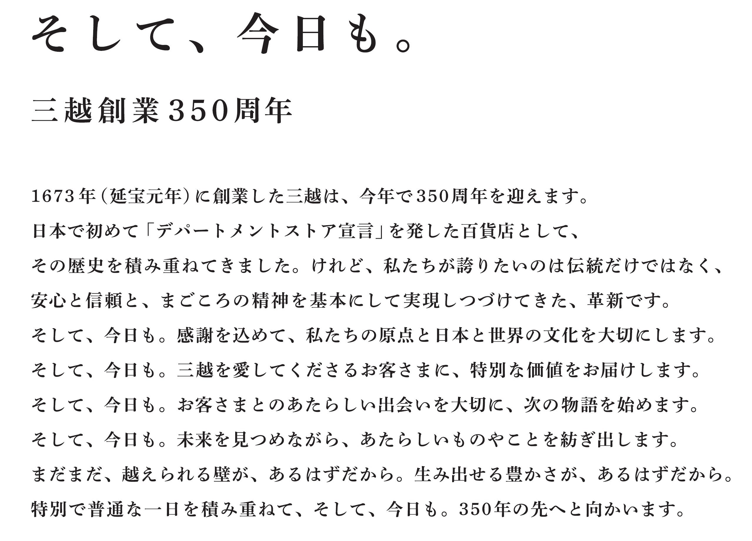 「そして、今日も。」4月1日から全国の三越で「三越創業350周年」がスタート!三井家始まりの地・三重展や350周年記念企画も。特別な1年をお届けします。