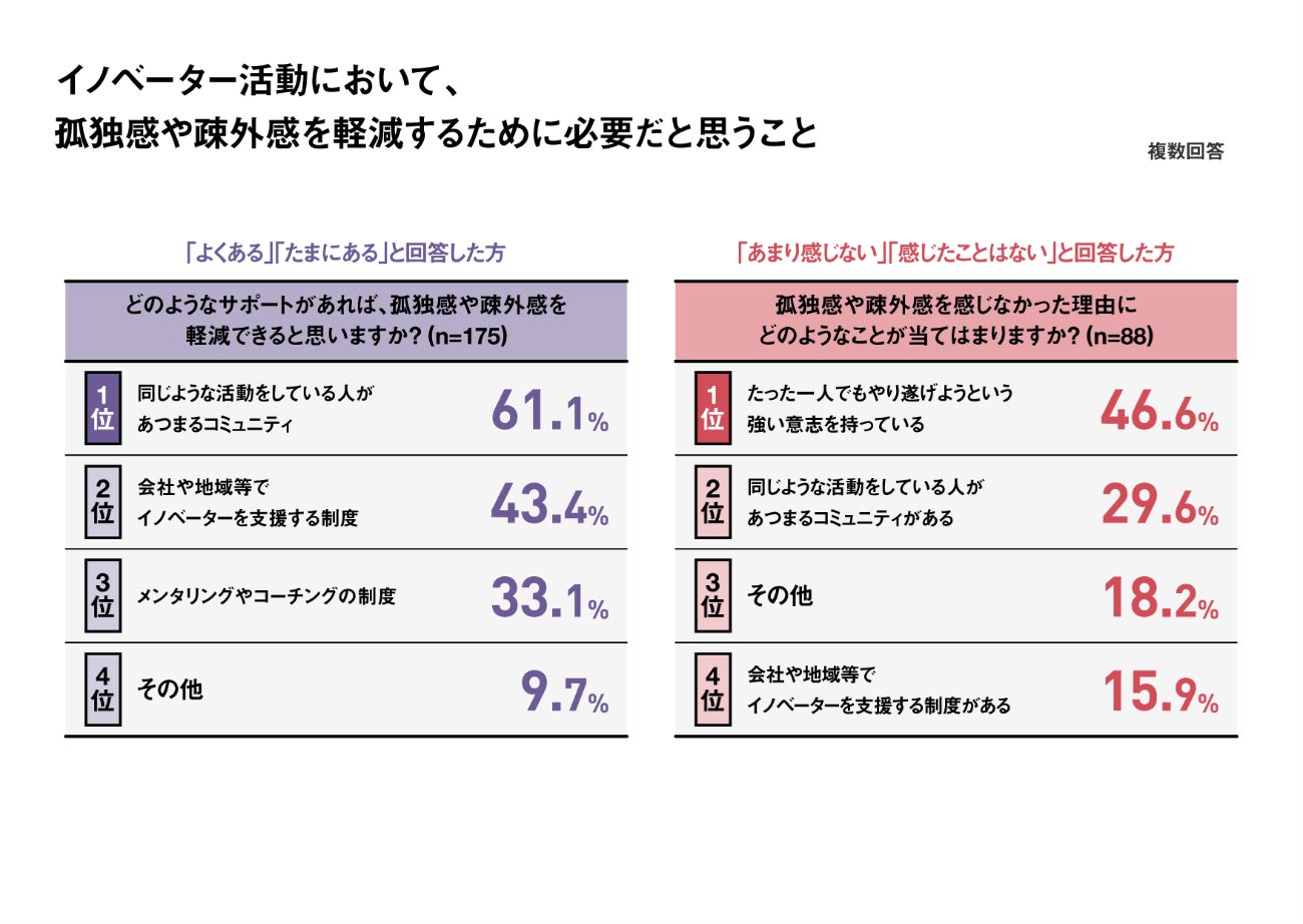 今回の調査を通じて、多くのイノベーターが「自分がやりたいから」という想いを基盤として活動をしていることが分かりました。その想いにある「Why」をさらに深く掘り下げ、自ら形にし、発信していくことこそ、イノベーターが孤独と戦い、そして周囲を変えていく力となるのだと考えています。