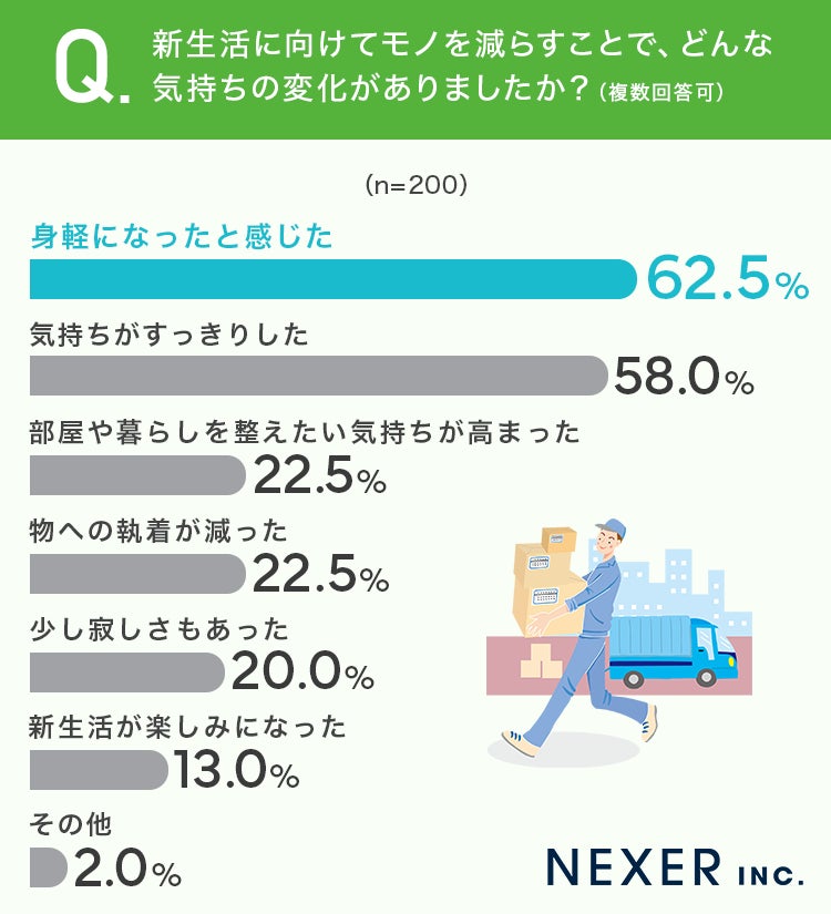最後に、新生活に向けてモノを減らしたことで、どのような気持ちの変化があったかを聞いてみました。
