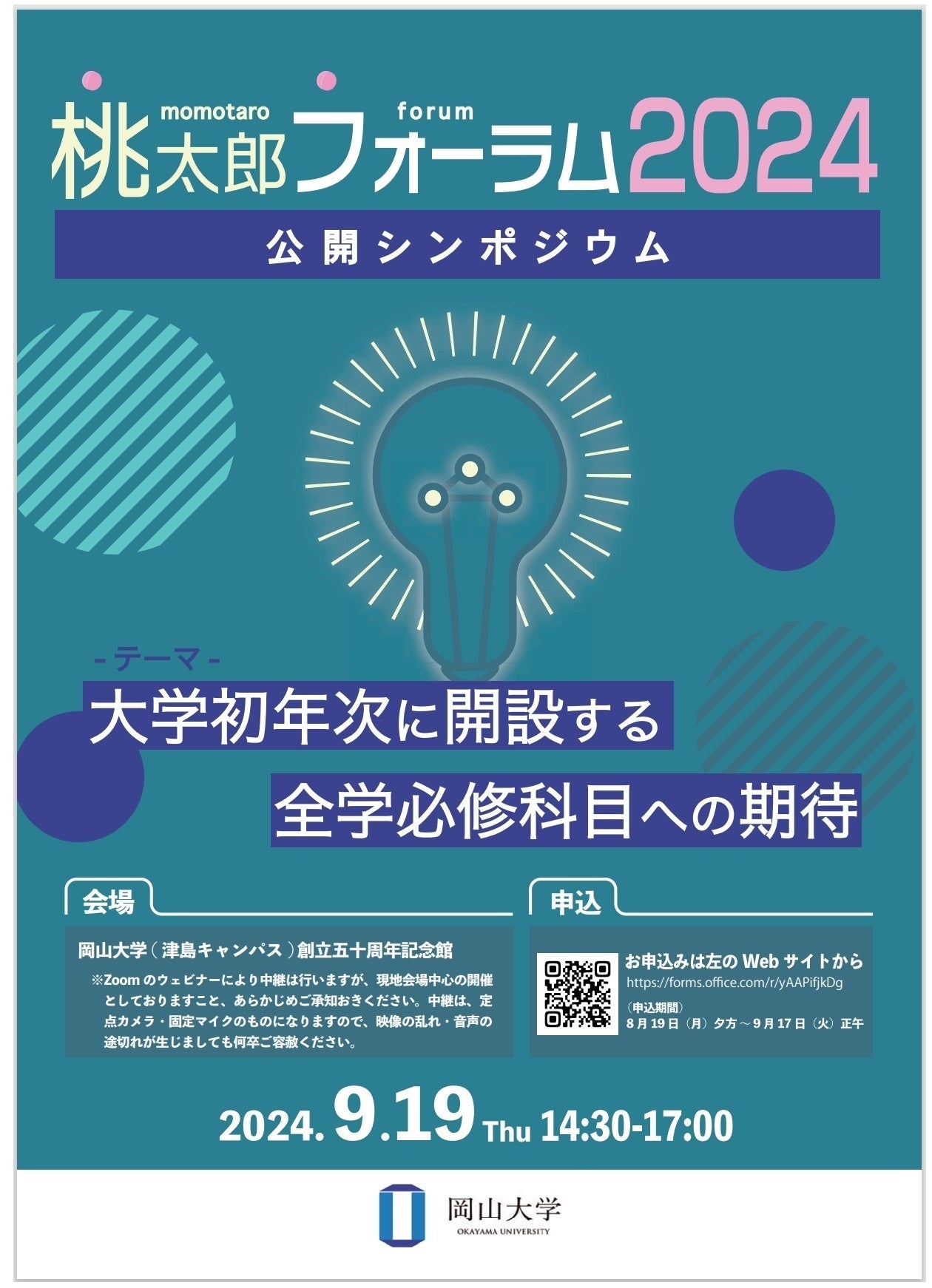 【岡山大学】桃太郎フォーラム2024「大学初年次に開設する全学必修科目への期待」〔9/19,木 岡山大学創立五十周年記念館〕