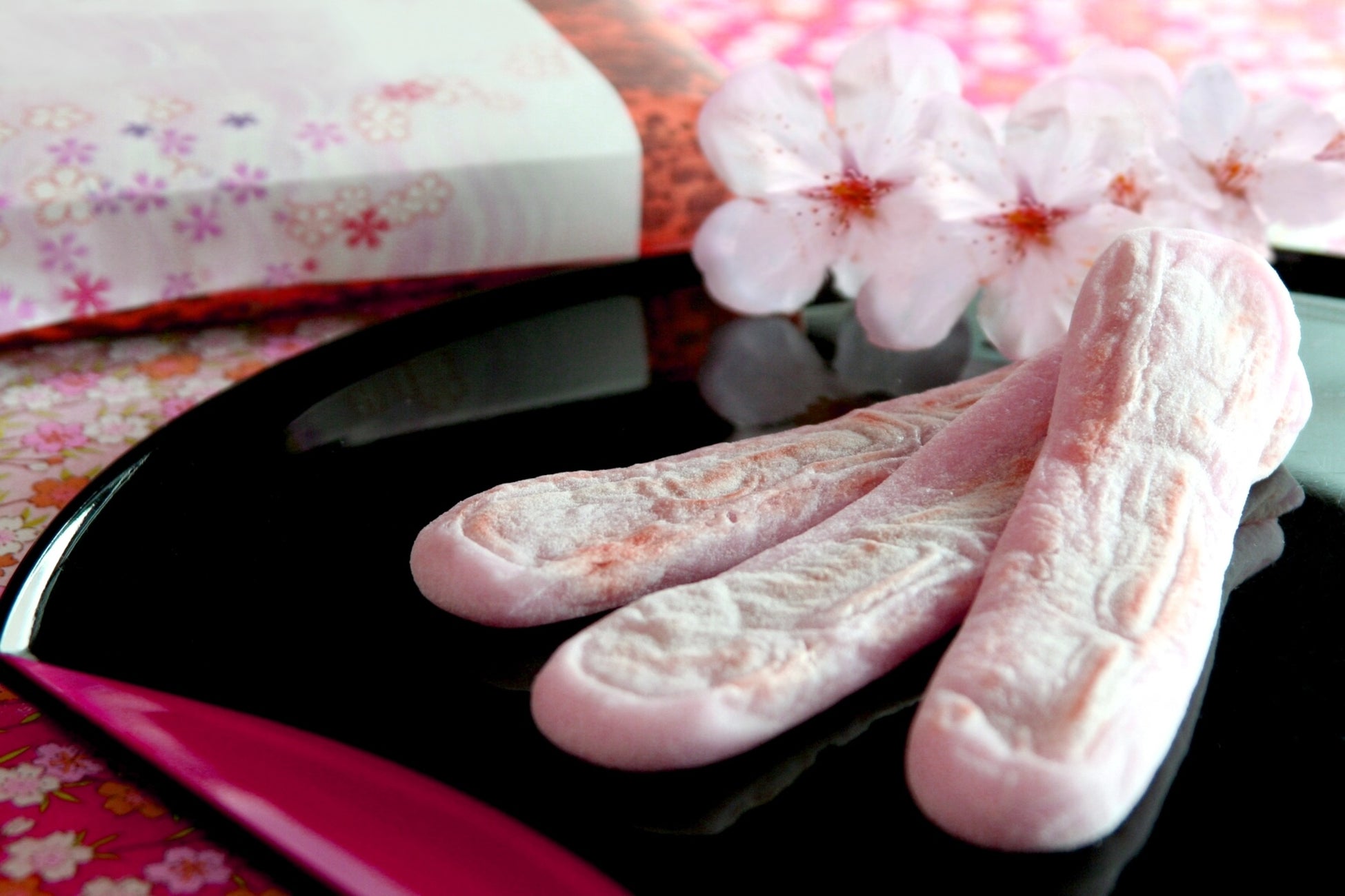 華やかな桃色の皮で珍しい桜餡を包んでいます。白餡の甘さを引き立たせるほんのりとした桜風味の塩味。