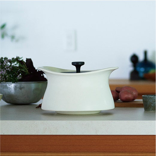 四日市の伝統工芸品である萬古焼と金属の蓋を融合させた羽釜土鍋。高度な技術で隙間がなく、熱も美味しさも逃さない技ありの土鍋。