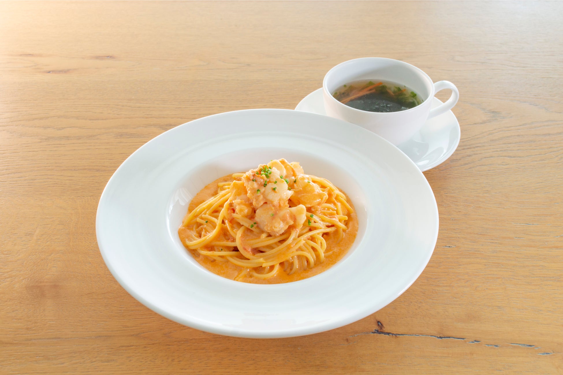 イタリアンシェフ奥田政行氏監修のイタリアンレストランからは伊勢海老の旨みとコクを引き出した特製ソースを加えたトマトクリームのパスタが登場。