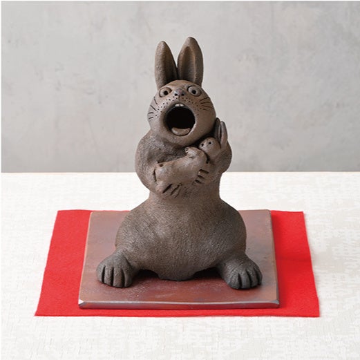 立ち姿の親うさぎと、その腕に抱かれた子うさぎをモチーフにした親子うさぎ香炉。思わず見つめてしまうユニークな表情はくらしを彩るオブジェとしても楽しい一品。※商品の特性上、一点一点風合いが異なります。