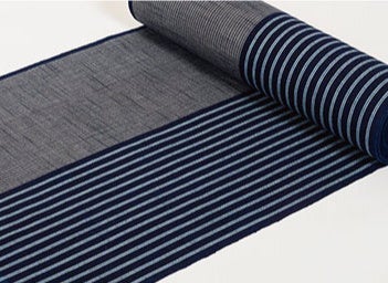 職人が藍染木綿糸を使い、一反一反手織りした松阪もめんの反物。「松坂嶋」と呼ばれる特徴的な縞模様が、小粋なおしゃれを演出します。
