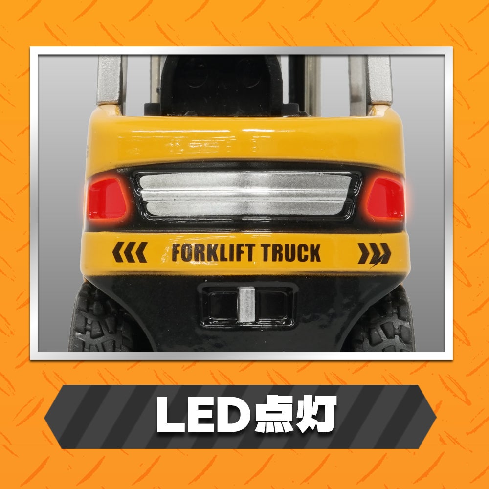 ダイキャストの質感と重量感。ミニサイズながら“おもちゃ感”を感じさせない本格仕上げとなっており、デスクやリビングなど気軽にフォークリフト体験が可能です!荷物運搬、リフト昇降、サウンド&LED点灯まで楽しめる本格フォークリフトRC。USB‑C充電で手軽に遊べる、リアル作業アクションモデル!