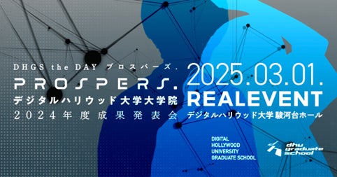 日本初の株式会社による専門職大学院で、[SEAD(Science/Engineering/Art/Design)]4要素の融合をコンセプトとして、デジタルコミュニケーションを駆使し、社会に新しい産業や文化を生み出すリーダーを輩出するデジタルハリウッド大学大学院(東京都千代田区 学長 杉山知之 以下本大学院)では、大学院生が修了課題として取り組んだ成果を発表する『デジタルハリウッド大学大学院2024年度成果発表会PROSPERS. DHGS the DAY』を、2025年3月1日(土)に本学駿河台キャンパスにて開催いたします。