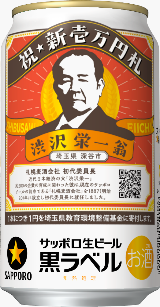 渋沢栄一翁は、現在のサッポロビールの前身である「札幌麦酒会社」を1887年(明治20年)に設立し、初代委員長にも就任した人物です。本商品は、サッポロビールと所縁の深い渋沢栄一翁が新一万円札の肖像としてデザインされることを記念し発売します。
