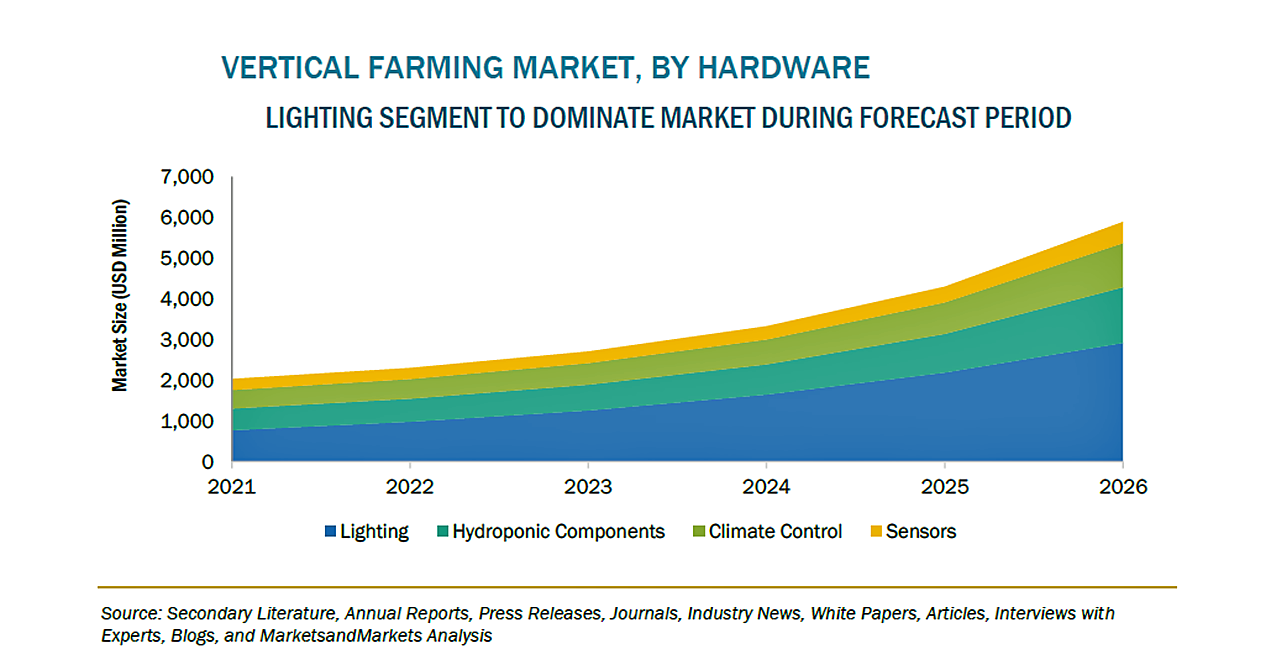 垂直農法の市場規模、2026年には97億米ドル到達予想