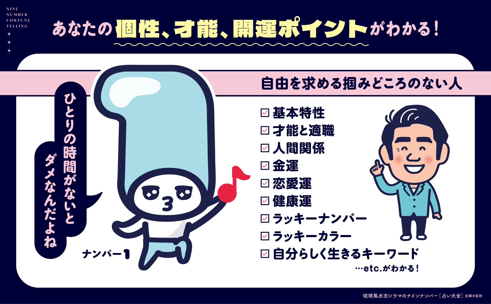 たとえば、ナンバー1は自由を求める人。ひとりの時間を確保すること運気アップのコツだったりするのです。