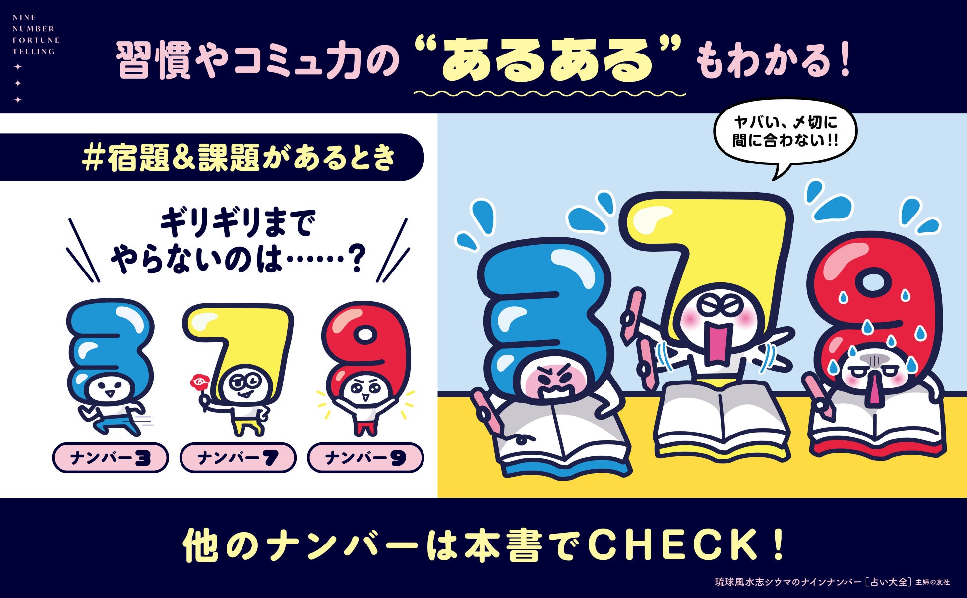 たとえば、宿題や課題があるとき。ギリギリまでやらない傾向があるのはナンバー3、ナンバー7、ナンバー9。一方、サクサクと進めるのは? コツコツ地道に進めるのは? 〆切を越えても気にしないのは……どのナンバーでしょうか⁉