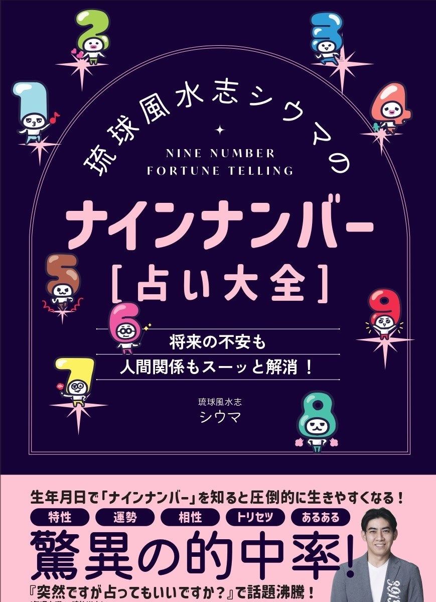 テレビ番組『突然ですが占ってもいいですか?』で話題、琉球風水志シウマの「ナインナンバー占い」が書籍化。ナンバーに秘められた運勢や特性を知ると人生の選択や人づきあいのコツに役立ちます。