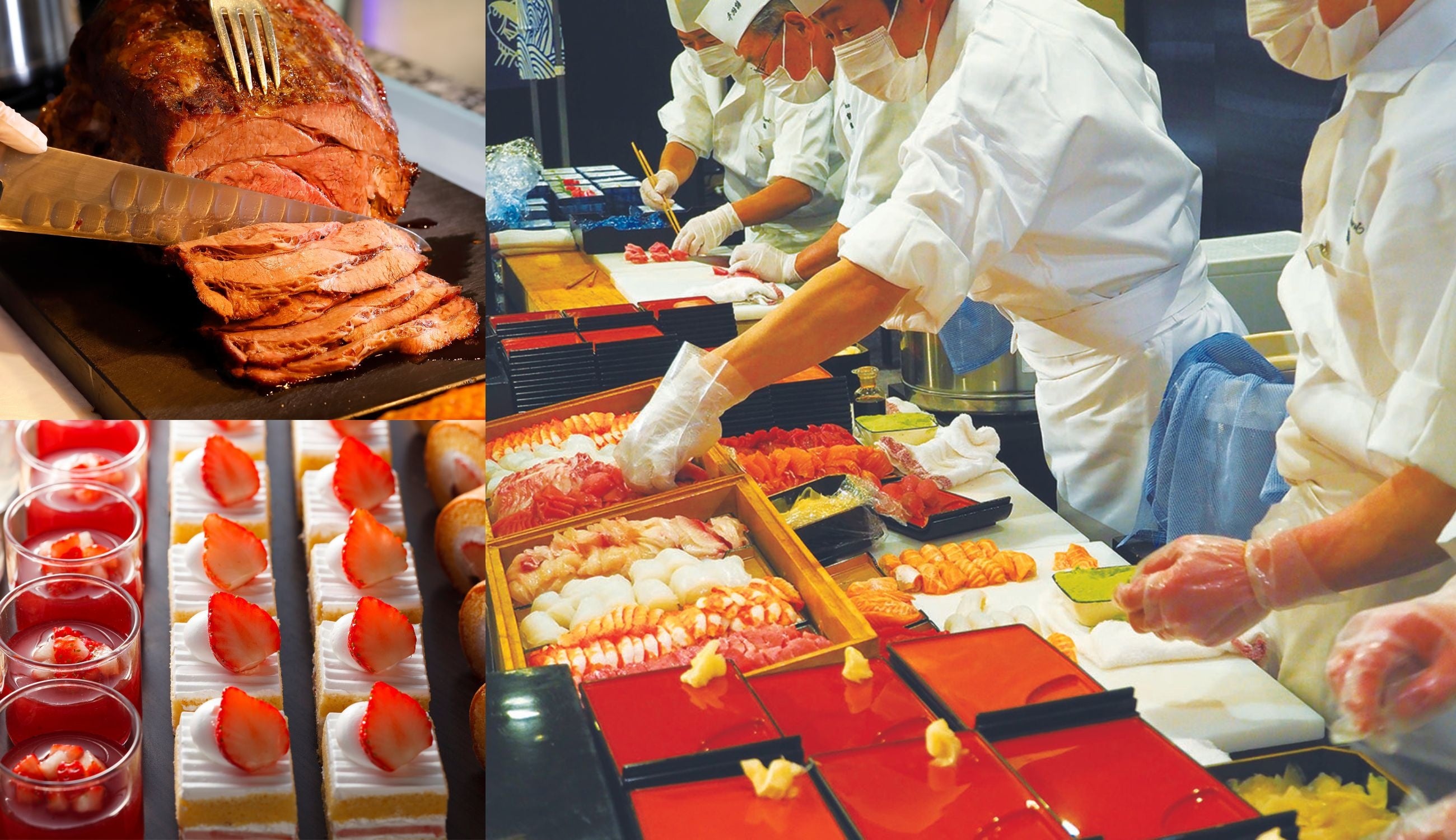 そのほか、ホテルニューオータニの食の集大成ともいえる、美食を一堂に集めたお正月限定のグルメビュッフェ「紀尾井町グルメプレゼンテーション」や、パティスリーSATSUKIとピエール・エルメ・パリのコラボレーションスイーツビュッフェ「SWEETS COLLECTION」など、美食イベントも目白押し!ご宿泊のお客さまのご予約を優先してご案内いたします。