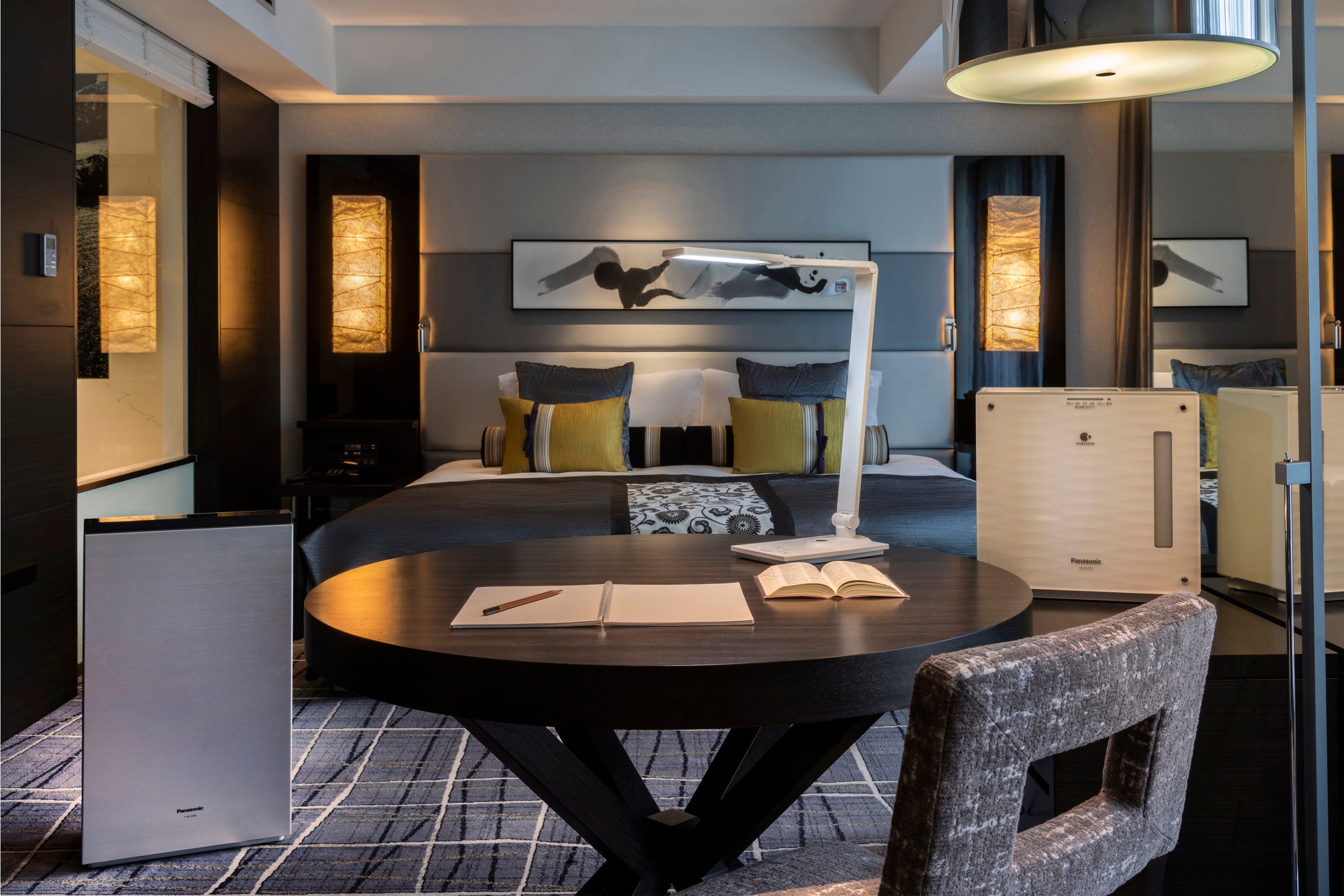 1日5室限定『受験生プランPremium』では、除菌・脱臭に優れた効果を発揮する「次亜塩素酸」の働きで清潔な空間を保つ空間除菌脱臭機「ジアイーノ」をはじめ、パナソニック製品3種類をお部屋にご用意し、受験生の皆さまをお手伝いいたします。極上の快適空間をお過ごしください。