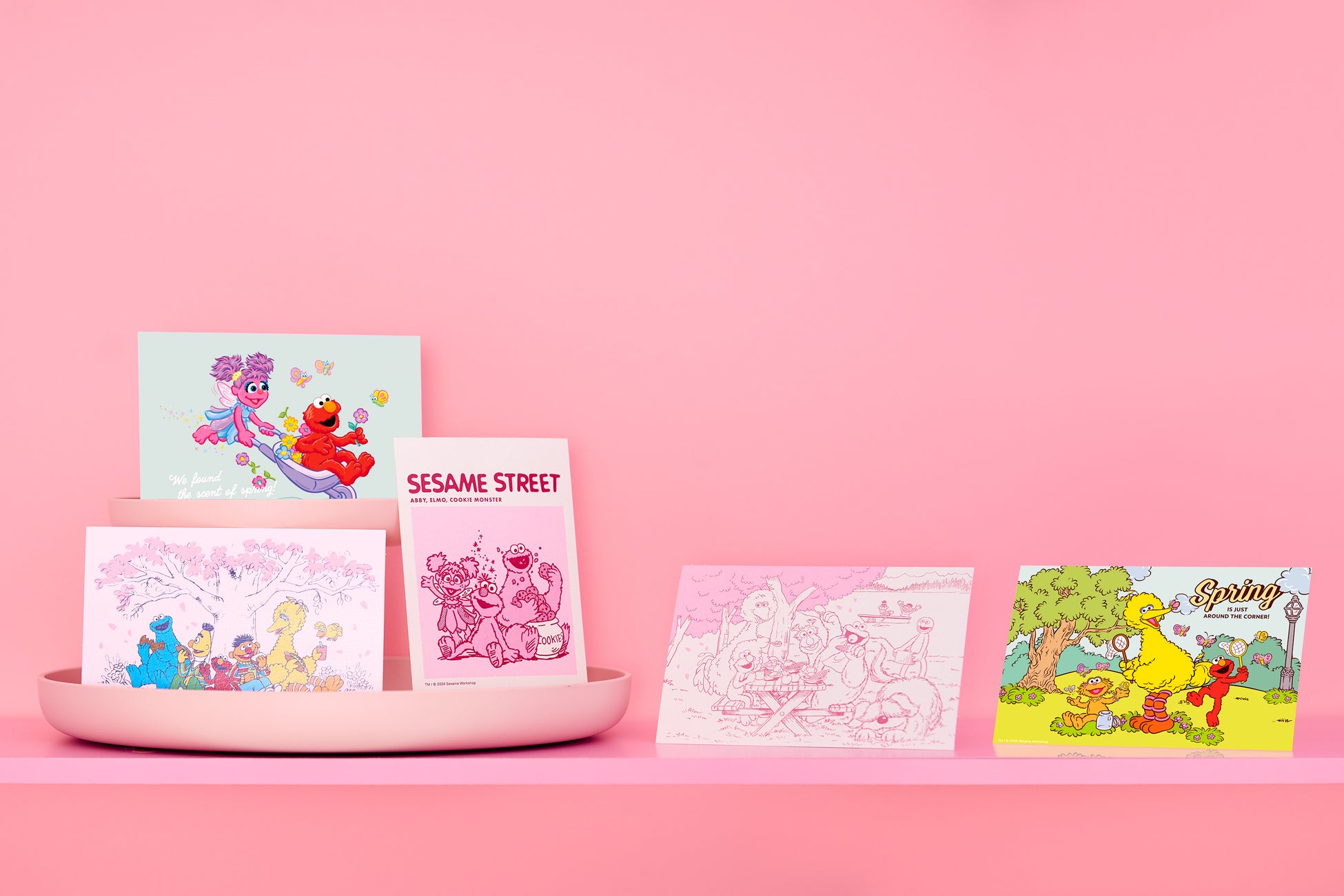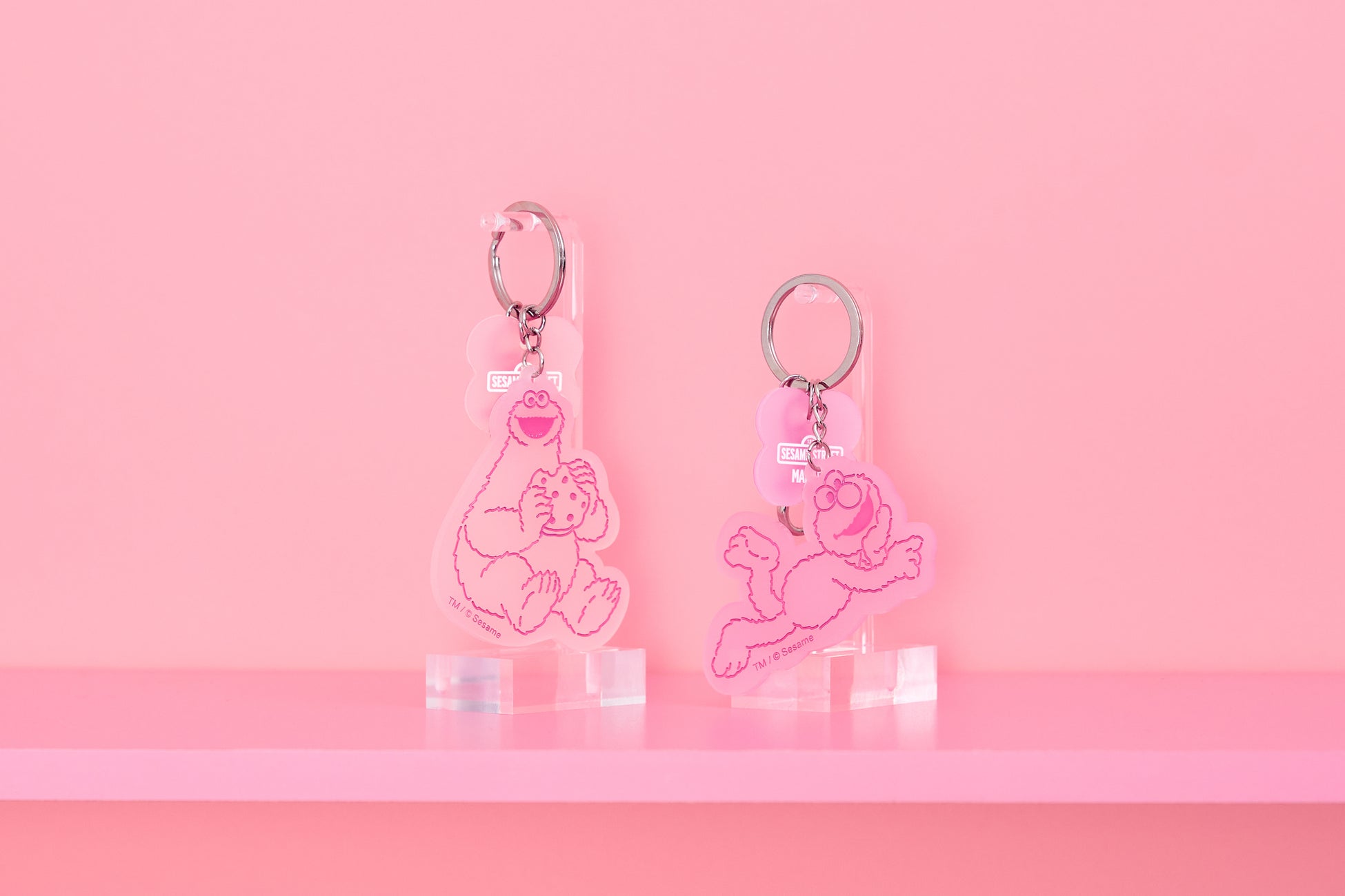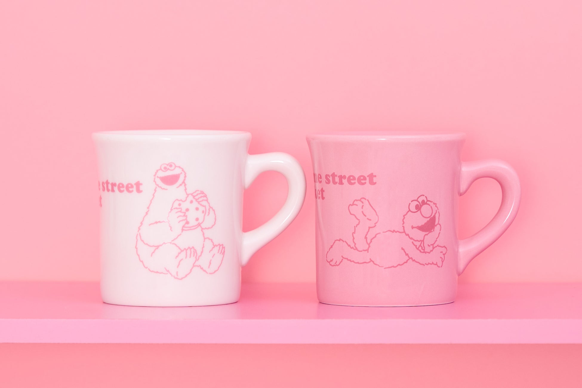エルモはピンク地にピンクのアート、クッキーモンスターは白地にピンクのアートという、心ときめくカラー構成も絶妙。