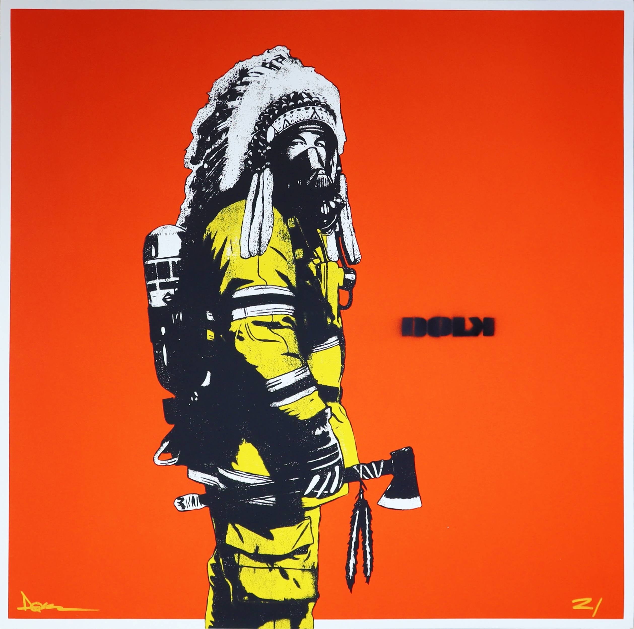 ドルク「Red Chief with Dolk stencil」 65×65cm シルクスクリーン、ステンシル ed.1/1 2021年