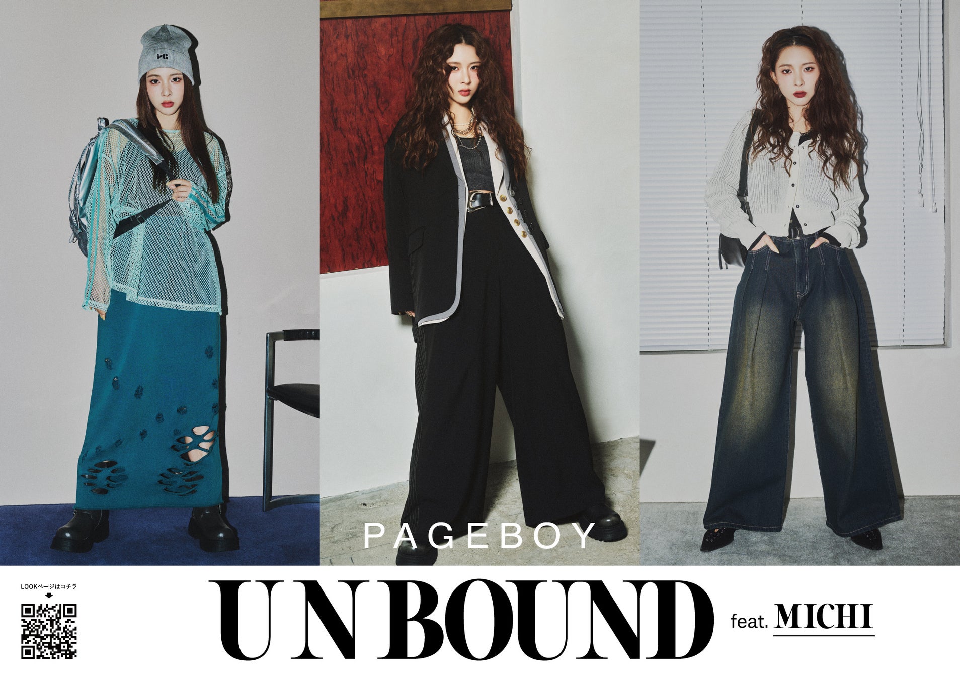 2025年春は「UNBOUND」をテーマに、ルールや制限に縛られず、自由に自分らしさを表現。PAGEBOYらしいオンナマエなセットアップや、定番デニム、エッジの効いたレザージャケットなど、モードなスタイリングから個性的なスタイルまで、透明感が溢れるミチさんが着こなす春の新しい、6種類のスタイリングを披露しています。
