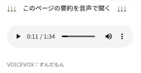 記事内に下記キャプチャのような箇所を設けています。「▶」の再生ボタンを押すと音声が流れるため、視聴環境に気をつけてご利用ください。