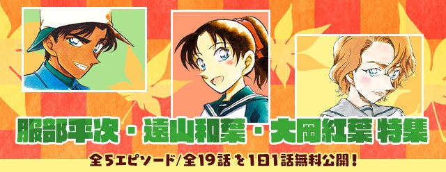 本特集では、「服部平次」「遠山和葉」「大岡紅葉」が登場するエピソードをまとめた特集を実施します。「名探偵コナン公式アプリ」内にて、全5エピソード19話を、1日1話無料でお読みいただけます。プレミアムクラブ会員の方は、公開された話は期間中いつでも無料購読できます。会員ではない方も期間中、第90・91巻の「コナンと平次の鵺伝説」と各エピソードの1話目は、公開後いつでも無料購読できます。