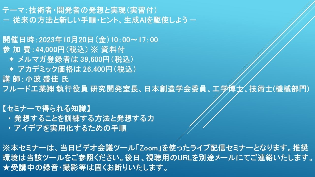 【ライブ配信セミナー】技術者・開発者の発想と実現(実習付)- 従来の方法と新しい手順・ヒント、生成AIを駆使しよう - 10月20日(金)開催 主催:(株)シーエムシー・リサーチ