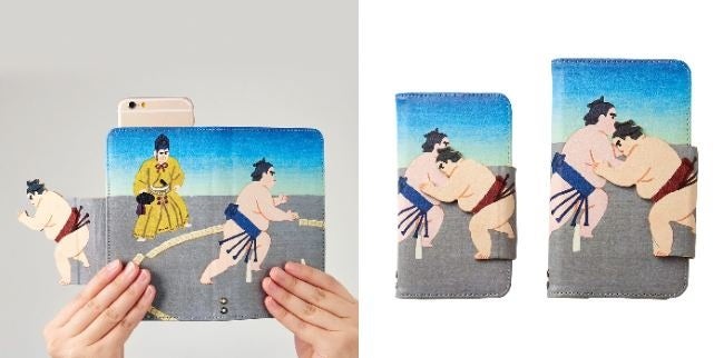 フェリシモが展開するユーモア雑貨ブランド「YOU+MORE!」は、お相撲大好きプランナーが企画した「大相撲ユーモア場所」シリーズの新商品「はっけよい、のこった! 相撲が取れるスマホケース」のウェブ販売を3月18日より開始しています。開け閉めするたびに「はっけよい、のこった!」という行司の声が聞こえてきそうな力士の真剣勝負を再現したスマホケースです。ケースの裏面には立行司の最高位である木村庄之助の装束をまとった行司の姿も描かれていて、取組の一連のシーンを見ることができます。本場所がないさみしい時期でも、いつでもどこでも手もとで相撲が楽しめる、相撲ファンにはうれしいとっておきのアイテムです。スマホケースは、手持ちのスマホに合わせて、大小2つのサイズから選べます。内側には便利なカードポケットと、名シーンが描かれたかわいいタグも付いています。ポップでアートなイラストは、相撲ファンだけでなく、春からの新生活に向けて身のまわりの小物を新しくしたいと考えている方にもおすすめです。