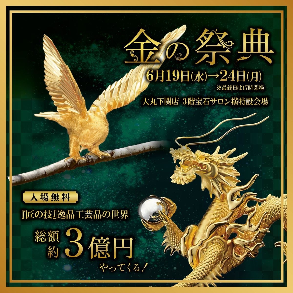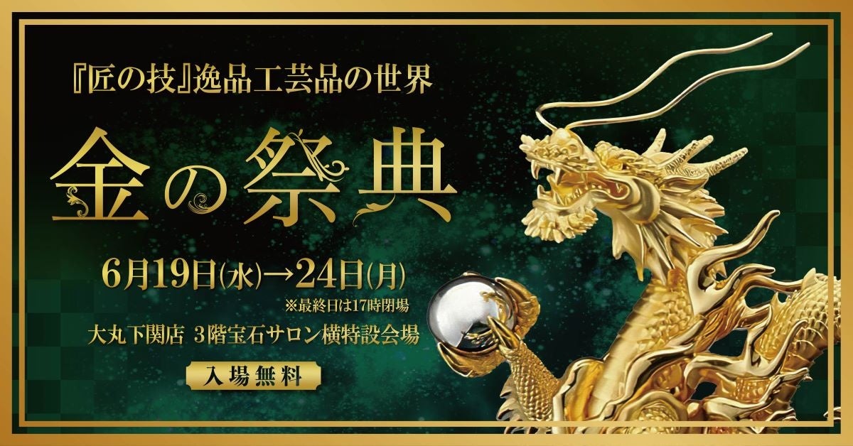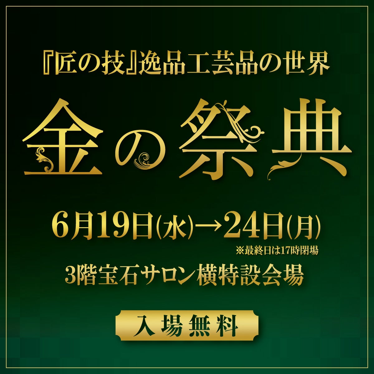 大丸下関店では、「匠の技」逸品工芸品の世界、見る人の心をひきつける金製品を取り揃えた「金の祭典」を開催いたします。総額約3億円、金製品約150点の展示販売です。