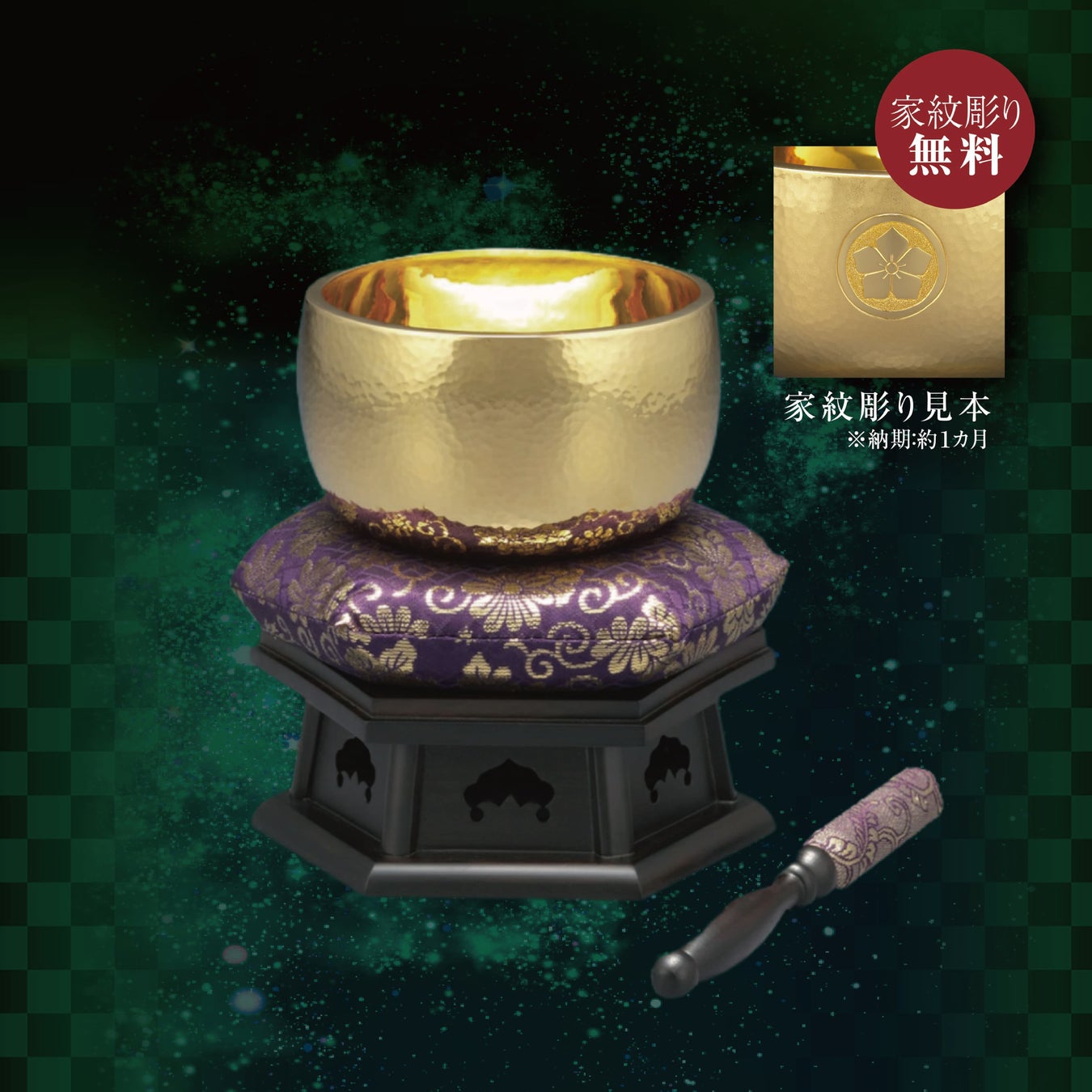 18金で制作された金の仏具「おりん」。心安らぐ音色とその響く余韻を会場にてぜひ体感してください。