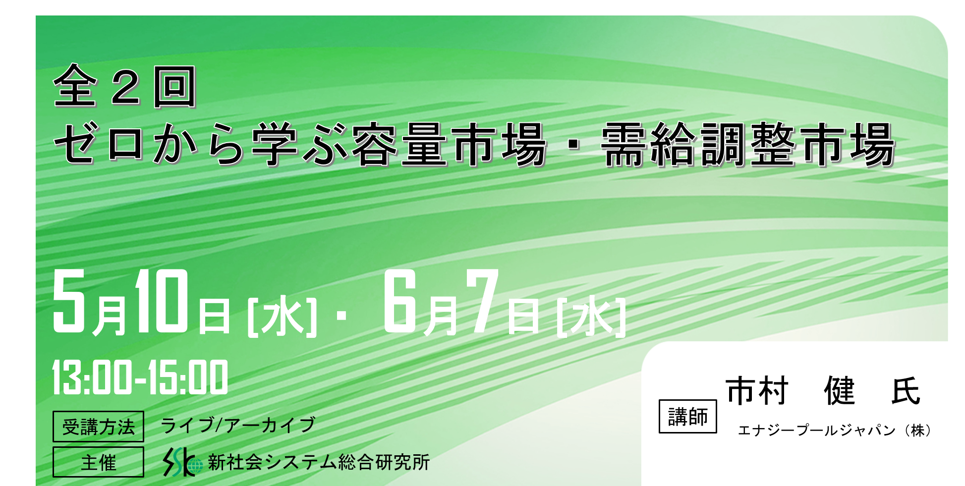 「全2回 ゼロから学ぶ容量市場・需給調整市場」と題してエナジープールジャパン(株) 市村 健氏 によるセミナーを2023年5月10日(水)・6月7日(水)に開催!!