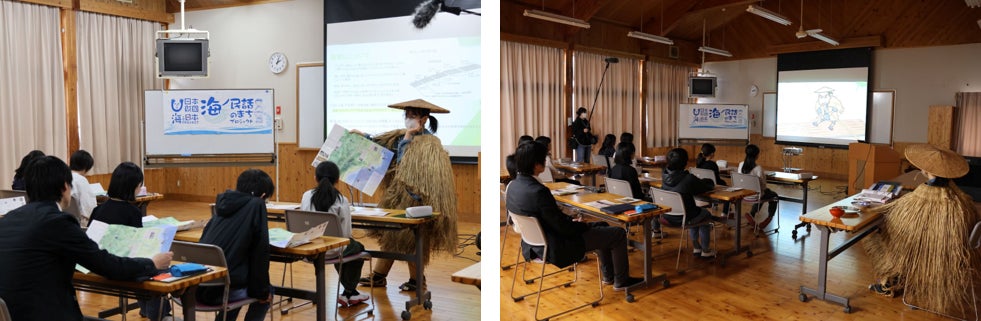 プログラム | 【対 象】 滋賀県高島市立朽木東小学校 5年生 【実施内容】 ①高島市役所教育総務部文化財課の方による しこぶちさんの歴史と地域の産業についての授業 ②アニメ上映 ③質問・まとめ 【講師】 高島市役所教育総務部文化財課 大藤 寛子 様 【進行】 びわ湖放送アナウンサー 小西 あゆ香 様 |