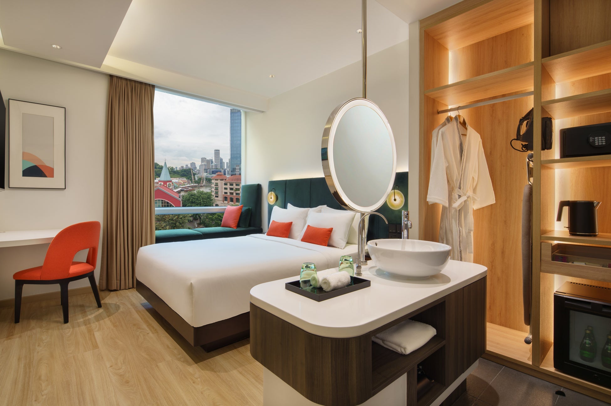 「Park Regis by Prince Singapore」は、203室の全客室に改装を施しました。観光地として根強い人気を誇るクラーク・キーやチャイナタウン、さらにはビジネスの中心街に程近く、ビジネスとレジャーの両側面での需要が見込まれています。ご到着前にスマートフォンからチェックインができる「コンタクトレスチェックイン」をはじめ、チャットシステムやモバイルアプリからご要望を伺うなど、ホテルの開業当初から培ってきたサービスにデジタルの要素を融合することで、すべてのお客さまに寄り添ったおもてなしをご提供いたします。
