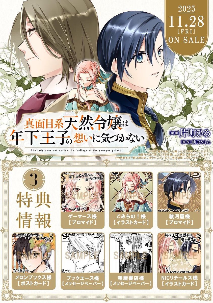 二度目の婚約から始まる宮廷ラブ(コメ) ストーリー最新巻『真面目系天然令嬢は年下王子の想いに気づかない 3巻』11月28日発売!法人別特典公開&描き下ろし漫画カードがもらえる書店フェアも開催!