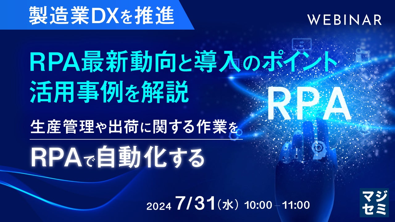 マジセミ株式会社は「生産管理や出荷に関する作業を、RPAで自動化する」というテーマのウェビナーを開催します。
