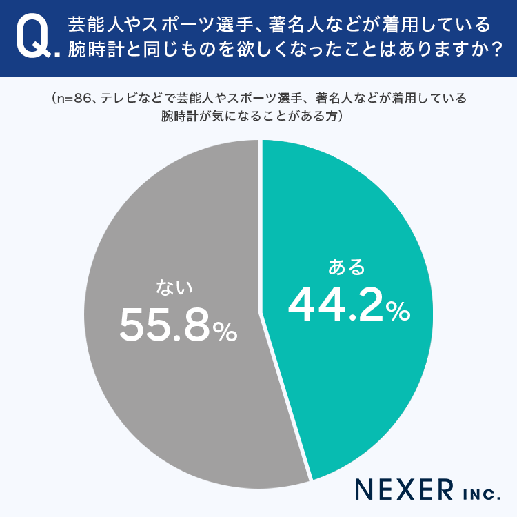 質問5:芸能人やスポーツ選手、著名人などが着用している腕時計と同じものを欲しくなったことはありますか?