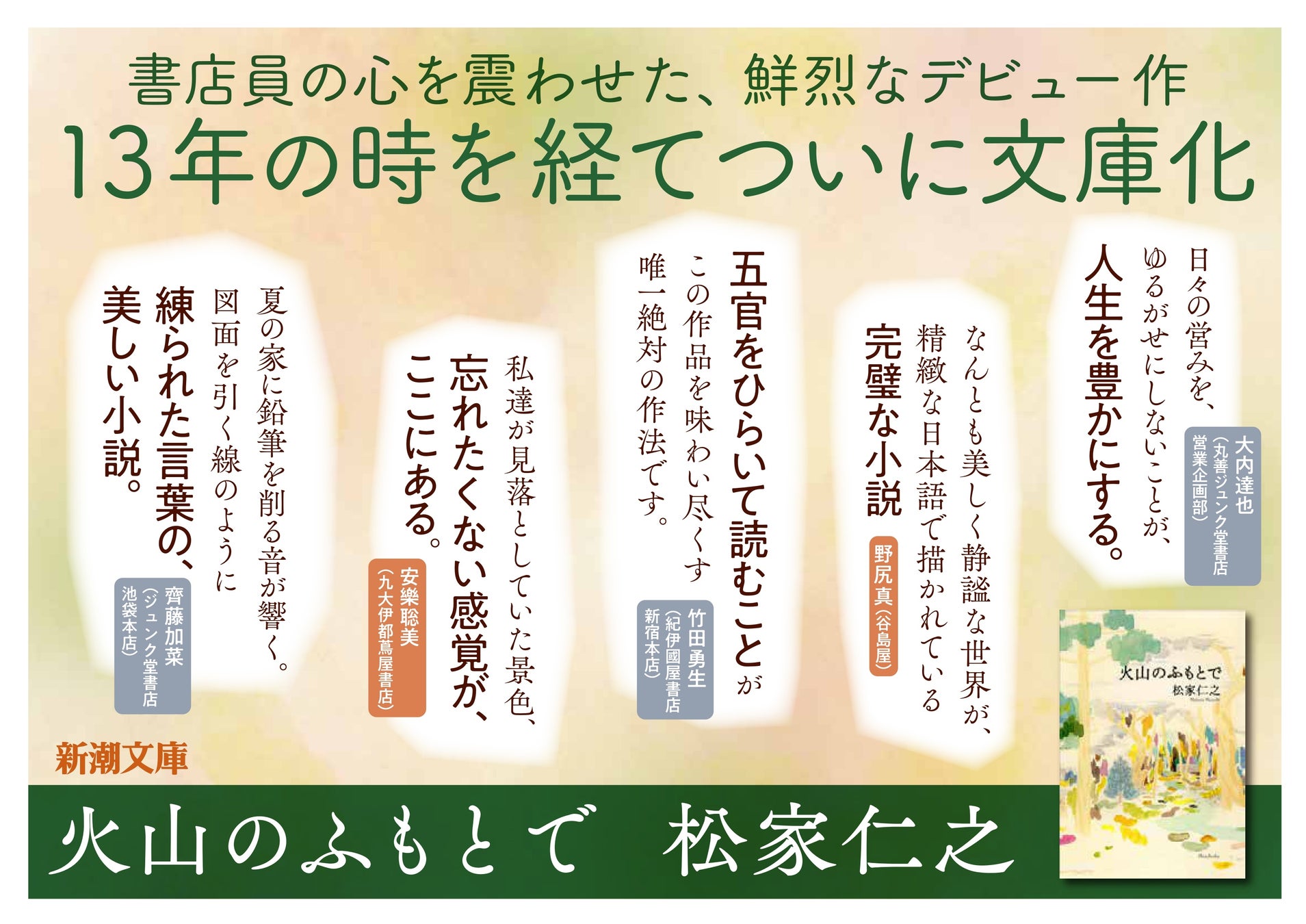 デビュー作にして読売文学賞を受賞した松家仁之さん『火山のふもとで』は、13年の時を経て今年1月に待望の文庫化、新潮文庫より刊行されました。本書の海外翻訳出版はアメリカ・イギリスを始め、世界7ヵ国で決定!韓国ではすでに12万部超のベストセラーとなっています。