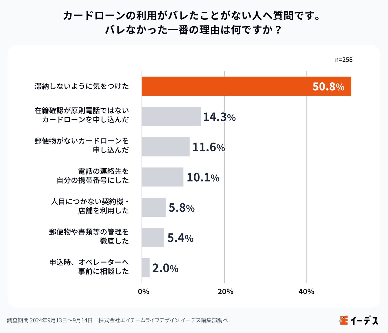 カードローンの利用がバレなかった一番の理由は「滞納しないように気をつけたため(50.8%)」が最多の結果に