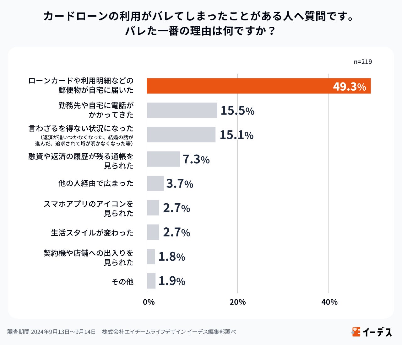 カードローンの利用がバレた一番の理由は「ローンカードや利用明細などの郵便物が自宅に届いたため(49.3%)」が最多の結果に