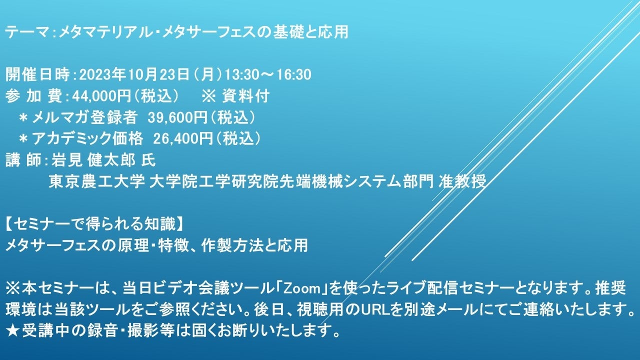 【ライブ配信セミナー】メタマテリアル・メタサーフェスの基礎と応用 10月23日(月)開催 主催:(株)シーエムシー・リサーチ