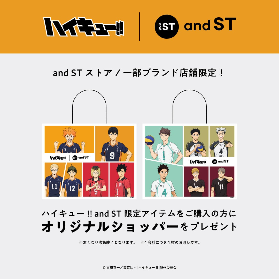 また、and STストアおよび、「RAGEBLUE」一部店舗にご来店のうえ、対象アイテムをご購入いただいた方には、数量限定の「ハイキュー‼」オリジナルショッパーをお渡しいたします。