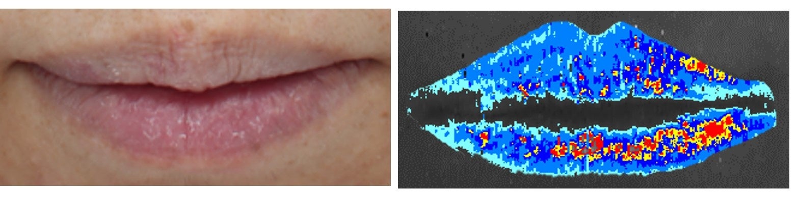 《肌の水分量を測定する独自の近赤外カメラシステムを唇へ応用》