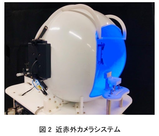 これまで当社は、波長800~2500 nmの近赤外光の吸収を可視化する近赤外カメラシステム(図2)を独自に開発し※4,5,6、肌や毛髪の水分量を測定する技術として、広く製品開発に活用してきました。今回、唇の水分量の測定に、非接触で広範囲の水分量を簡便に測定できるこの独自技術を応用できると考え、研究に取り組みました。