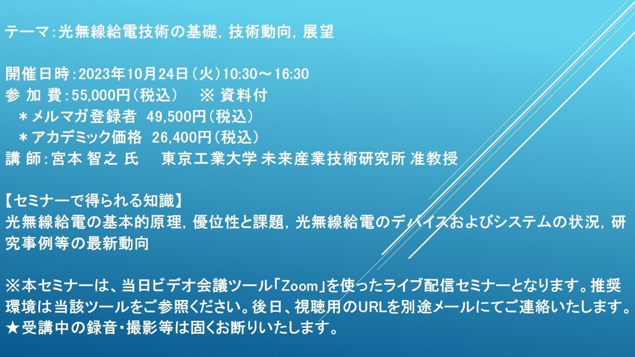 【ライブ配信セミナー】光無線給電技術の基礎,技術動向,展望 10月24日(火)開催 主催:(株)シーエムシー・リサーチ