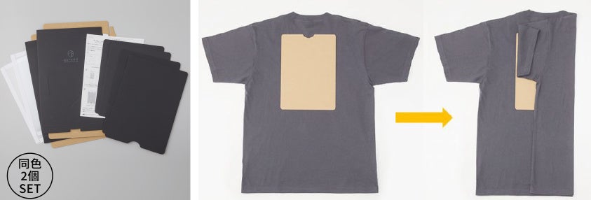 収納用のガイドボードをTシャツにセットし、ロゴプリント部分など見せたい箇所で折り畳んで組み立てると、簡単にフレーム内に収められます。