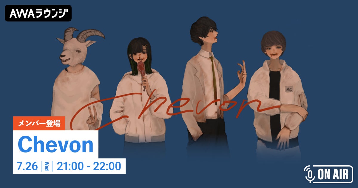 AWA株式会社(本社:東京都港区、代表取締役CEO:冨樫晃己)が運営する、サブスクリプション型(定額制)音楽ストリーミングサービス「AWA(アワ)」は、2023年7月26日(水) 21:00~22:00の1時間に渡り、オンライン空間「ラウンジ」で、Chevonのメンバーが音声とチャットで登場するAWAラウンジを開催いたします。