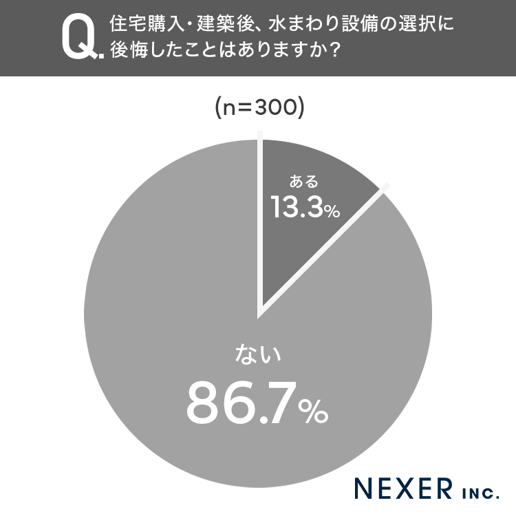 ■13.3%が、水まわり設備の選択に「後悔したことがある」と回答