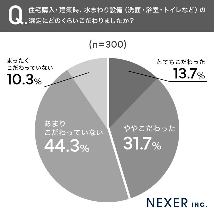 まず、水まわり設備(洗面・浴室・トイレなど)の選定にどのくらいこだわったかを調査しました。