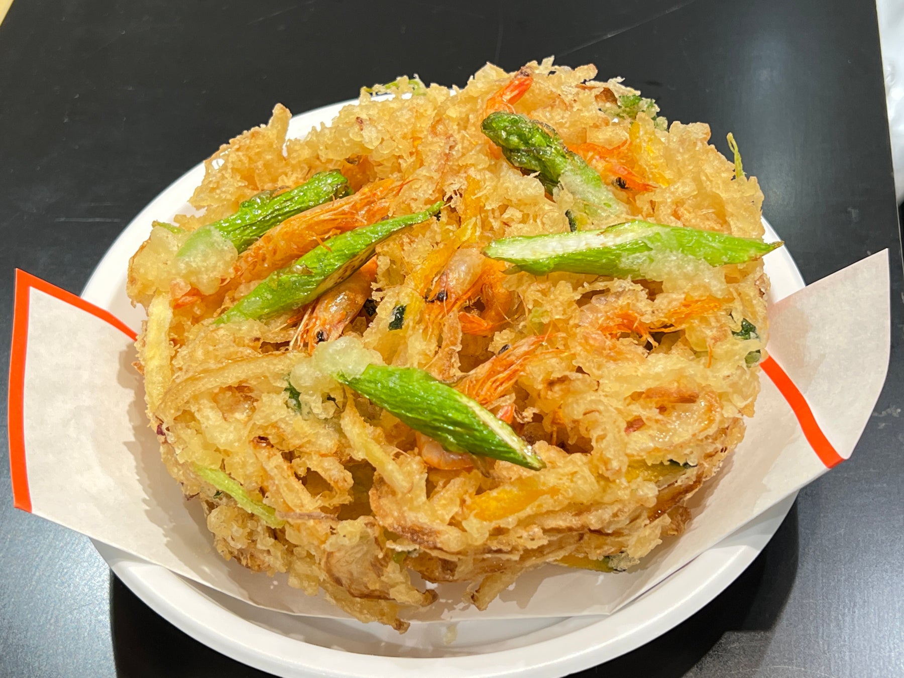 香川県高松市にある讃岐うどん店<本格手打もり家>の名物といえばこだわりの本生うどんとジャンボかき揚げ。今回は香川県産アスパラ「さぬきのめざめ」をトッピングしたかき揚げが登場。食べ応え十分のジャンボかき揚げに、さつまいも・かぼちゃ・三つ葉・玉ねぎ・さぬきのめざめ・瀬戸内産地えびが、バランス良くミックスされた甘味と香りを感じるサクサクっとした食感が特徴です。香ばしい「瀬戸内産地えび」とかき揚げと相性の良い香川県産アスパラ「さぬきのめざめ」をトッピングした香川県ならではのかき揚げをこだわりの本生うどんと合わせてお愉しみください。