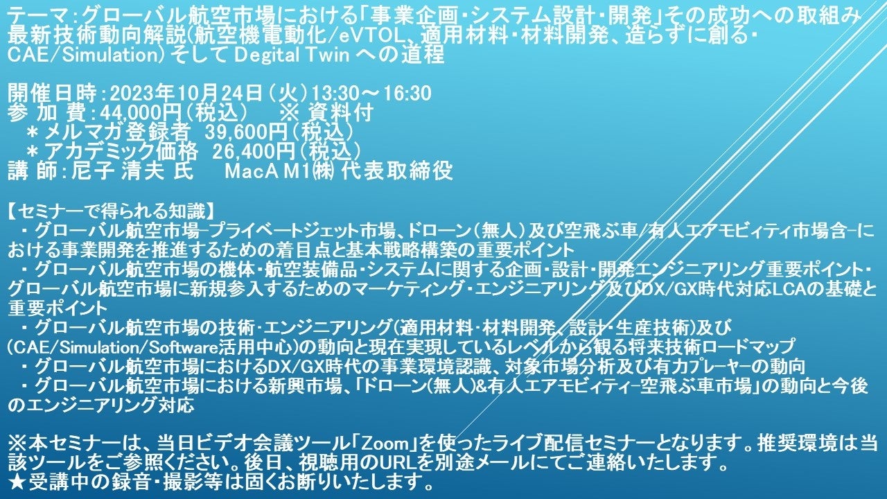 【ライブ配信セミナー】グローバル航空市場における「事業企画・システム設計・開発」その成功への取組み 10月24日(火)開催 主催:(株)シーエムシー・リサーチ